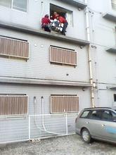 命綱の案全帯と地下足袋、そしてヘルメットという完全武装です。