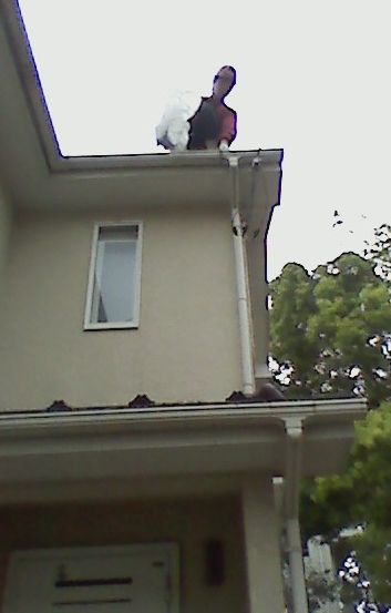 2階のベランダからはしごをかけて大屋根に直接取り付き